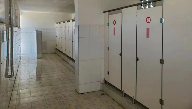 The bathrooms were just holes in the floor, so Janet started a project that resulted in new bathrooms being built in the school.