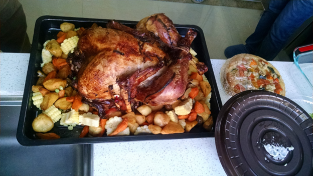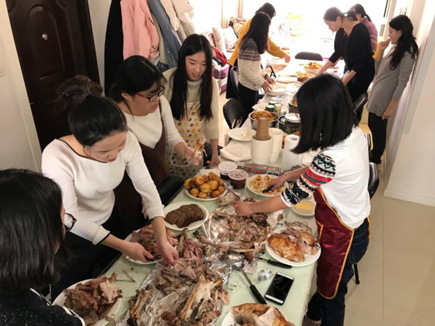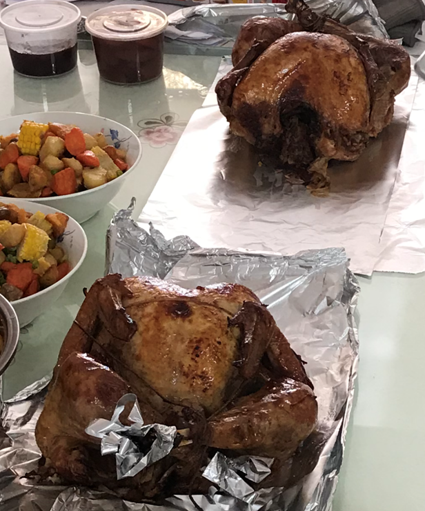 Over the 10 years, we had 47 Thanksgiving meals. Each meal had about 30 to 35 students. In total, we served 94 turkeys.