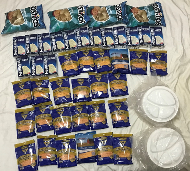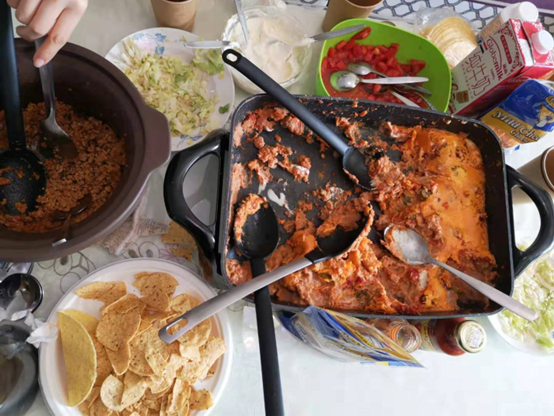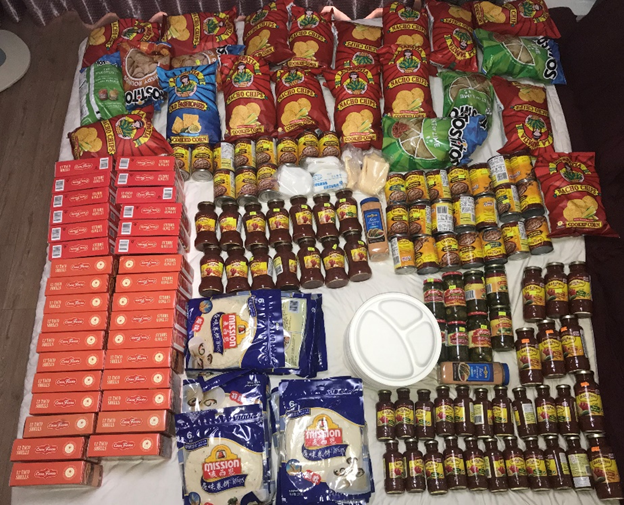 We had many parties where the students could eat meals from different countries. For example, we had a big taco dinner party. This is the food that we got for the party.
