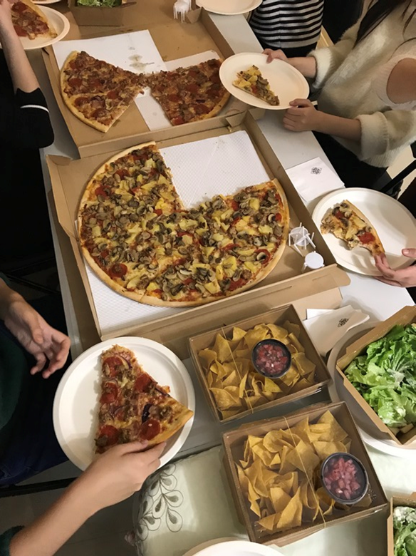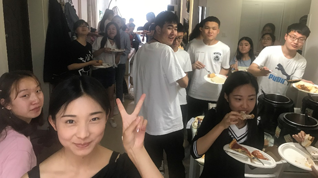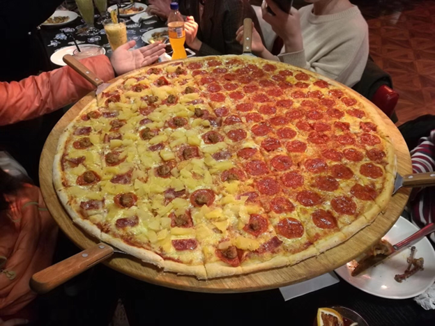 In addition, we had about 4 or 5 large pizza parties a year at our apartment. We normally had about 100 to 150 students at each party and about 15 to 20 large pizzas (see the photos below).
