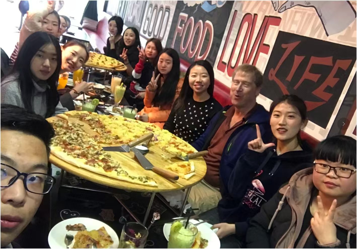Several times a year we would take some of my new students to a pizza restaurant. Usually, about 20 to 55 students would come to each meal.